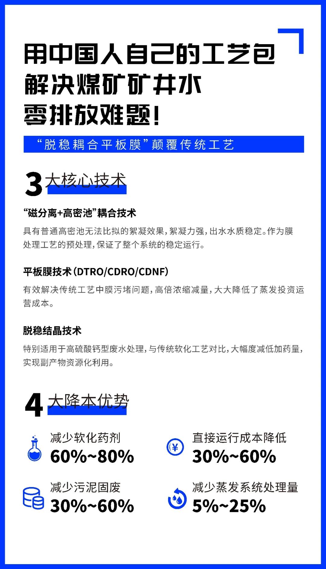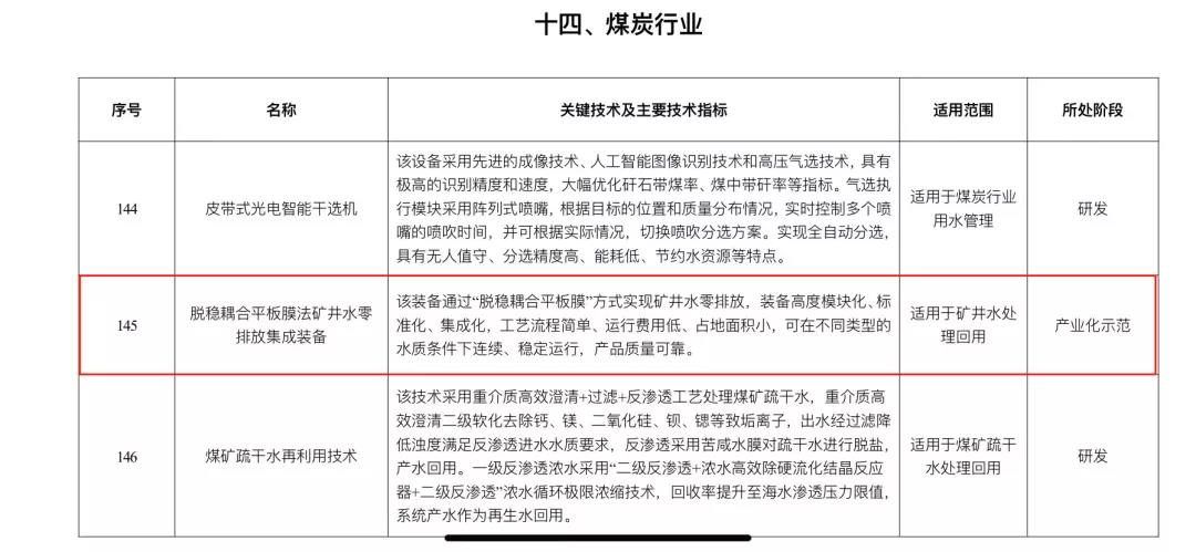 煙臺金正環(huán)保“脫穩(wěn)耦合平板膜法礦井水零排放集成裝備”入編煤炭行業(yè),作為產業(yè)化示范裝備,成功應用在山能集團、陜煤化集團等多個大型礦井水零排放項目上,不僅實現(xiàn)礦井水資源化利用,而且真正做到了節(jié)能降耗,超低成本運營,徹底解決了傳統(tǒng)化學藥劑處理工藝弊端,高質量引領煤炭行業(yè)創(chuàng)新發(fā)展。