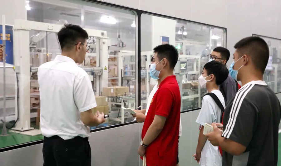 青少年志愿者們依次走訪了公司大數(shù)據(jù)中心、展廳、膜中心、組裝車間、研發(fā)實驗室等地。在這里,志愿者們近距離了解,世界領(lǐng)先的污廢水資源化和高品質(zhì)再生水回用工藝技術(shù),實現(xiàn)年減排污廢水7300萬噸;聆聽“中國人用自己的工藝包”解決“卡脖子”的發(fā)展難題”,打破國外技術(shù)壟斷的項目故事;感知世界領(lǐng)先的“特種膜全自動化生產(chǎn)線”,如何集聚工業(yè)互聯(lián)網(wǎng)、工業(yè)機器人、5G等先進技術(shù),開啟世界膜工業(yè)智能制造時代。