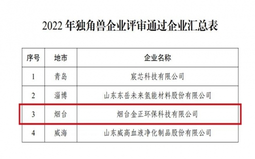 當前,我國環境治理需求不斷提升,污廢水處理作為環境治理的重要板塊之一,行業關注度持續升溫。此外,隨著監管趨嚴、標準提高等政策要求,污廢水治理市場受到了行業的高度重視,特別是在“水十條”以及“污水資源化”等政策出臺后,污廢水零排放、資源化利用等市場藍海不斷擴容,行業發展迎來重大戰略機遇。 圖 | 獨角獸企業名單領跑行業的“獨角獸” 成立于2012年的煙臺金正環保,是中國“膜法”水處理領域的高新技
